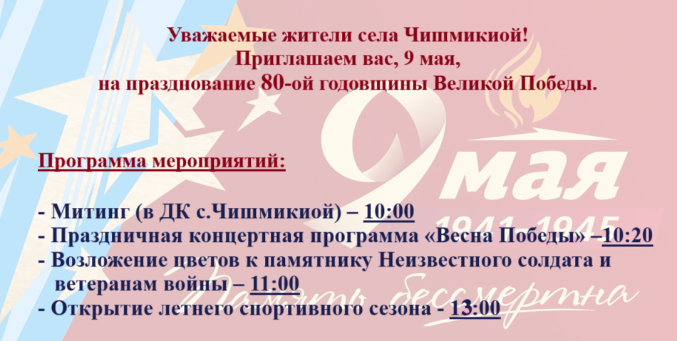 Новости Программа мероприятий на 9 мая 5 месяцев назад Продолжить чтение Вперед Лица с ограниченными возможностями могут получить компенсации за транспортНазад Поздравление примара с Днем Победы Еще статьи Новости Праздничный концерт ко Дню учителя прошел в селе Чишмикиой 3 часа назад Новости Поздравление примара с Днем учителя 1 день назад Новости Поздравление примара Маджар П.Г. с Международным днем пожилого человека 5 дней назад