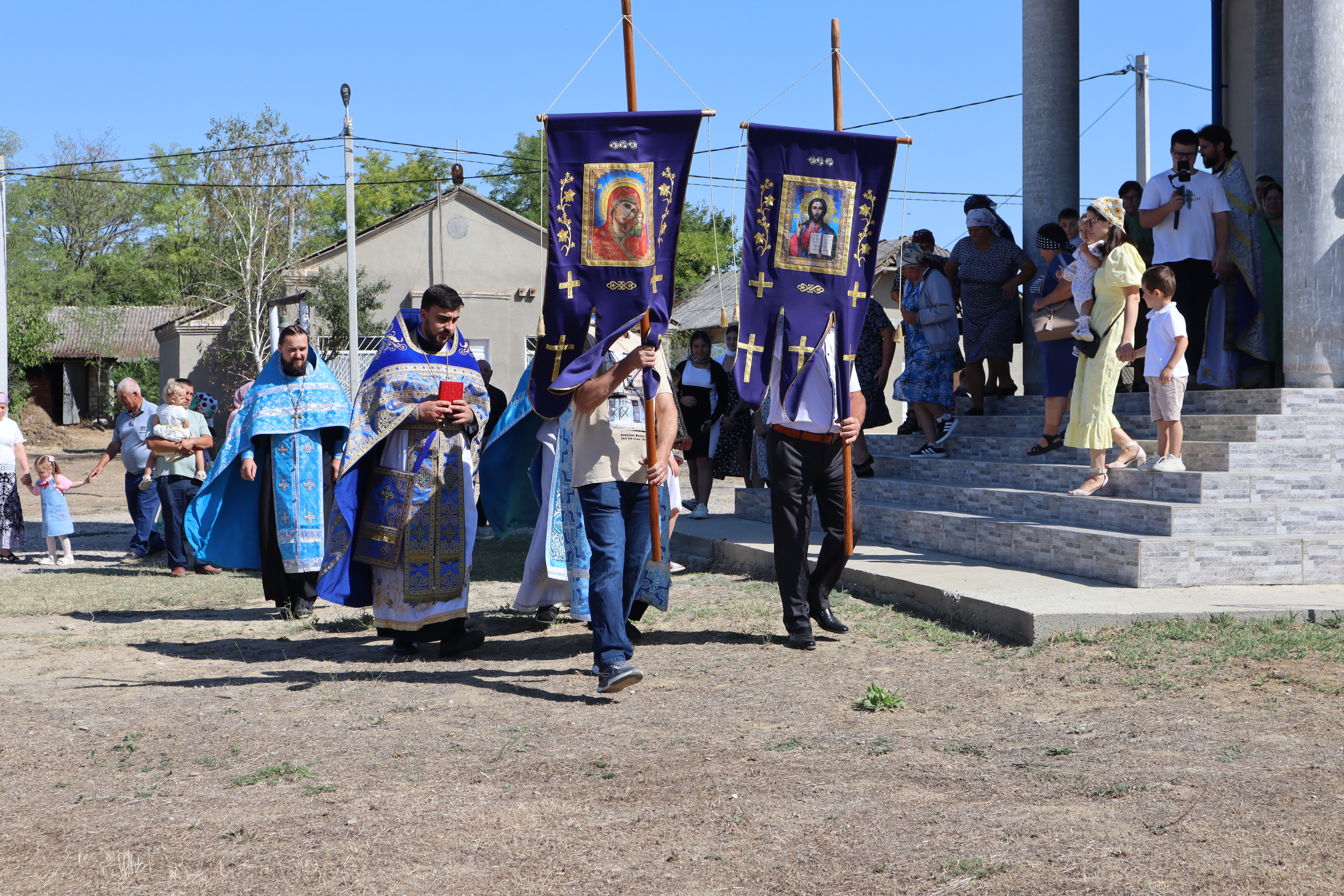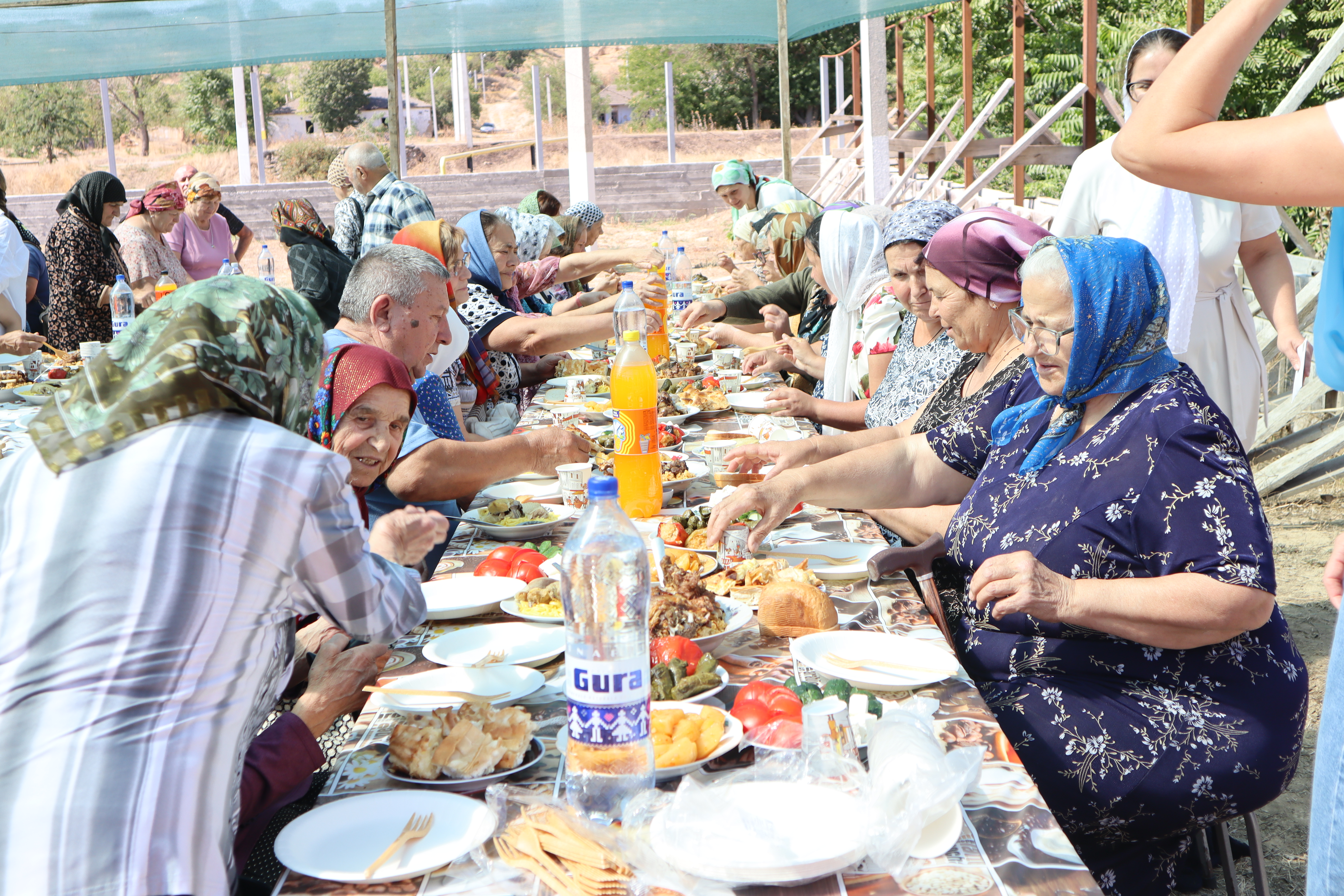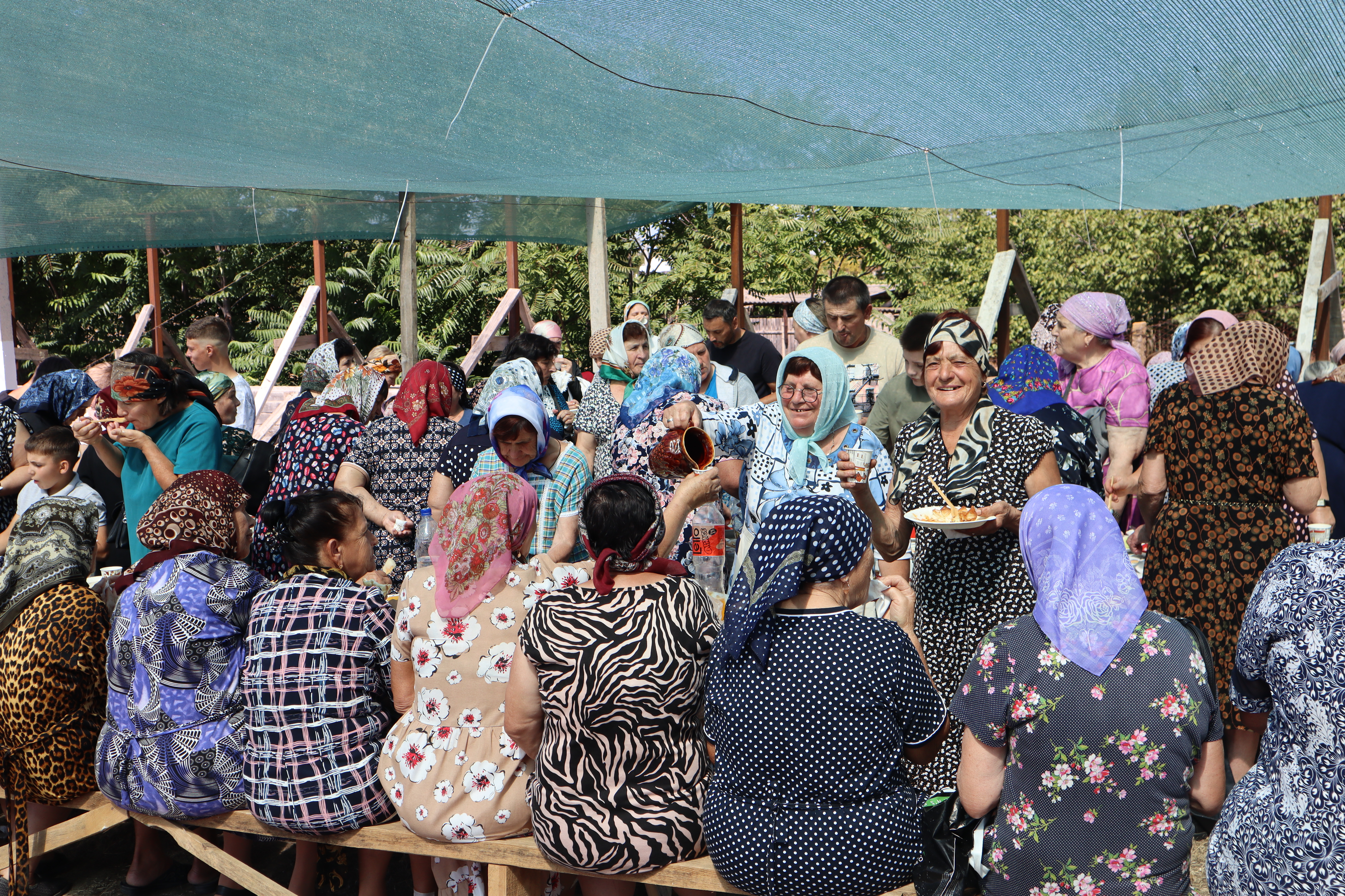 По окончании литургии состоялся традиционный крестный ход вокруг храма, после чего все были приглашены на праздничную трапезу (курбан).