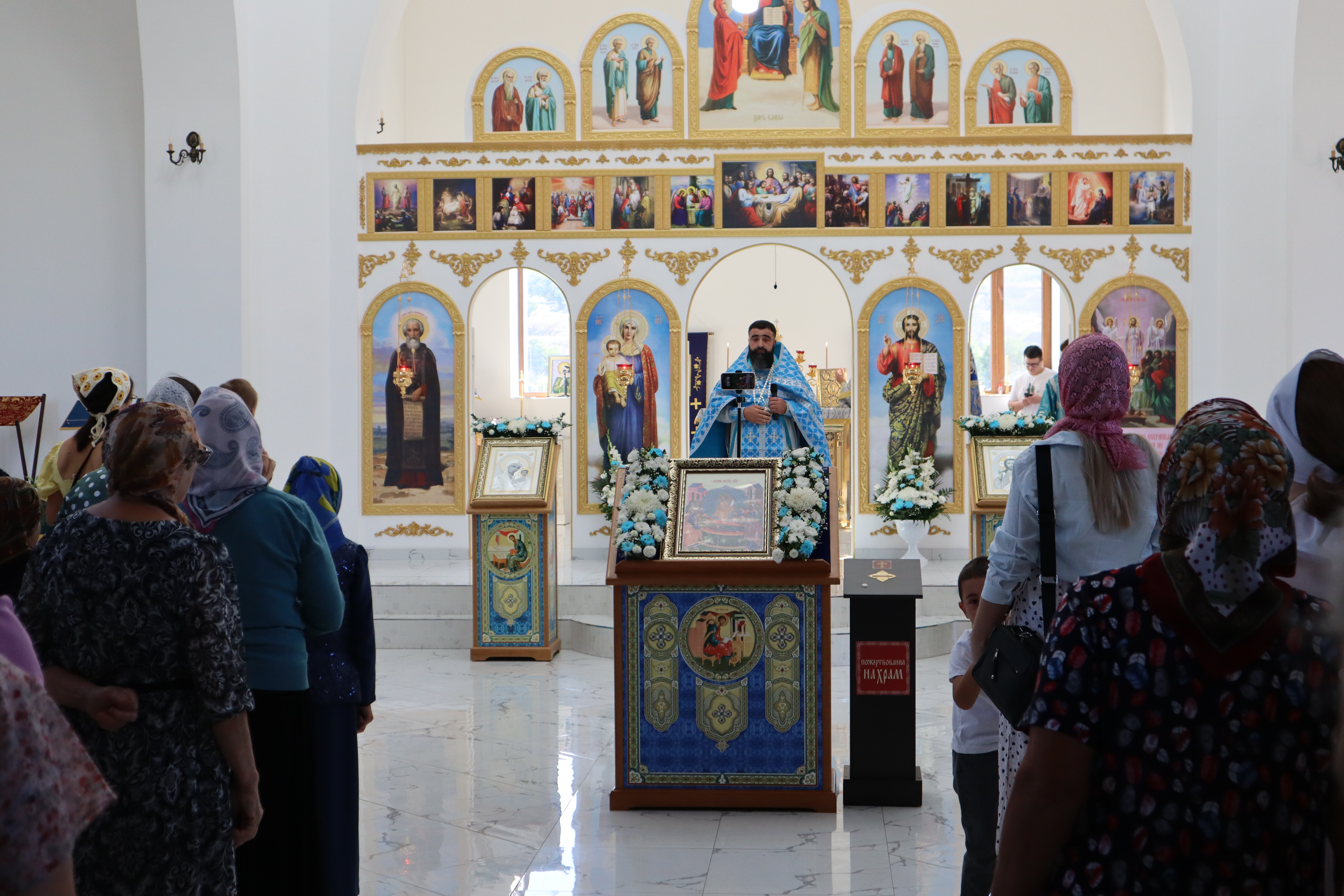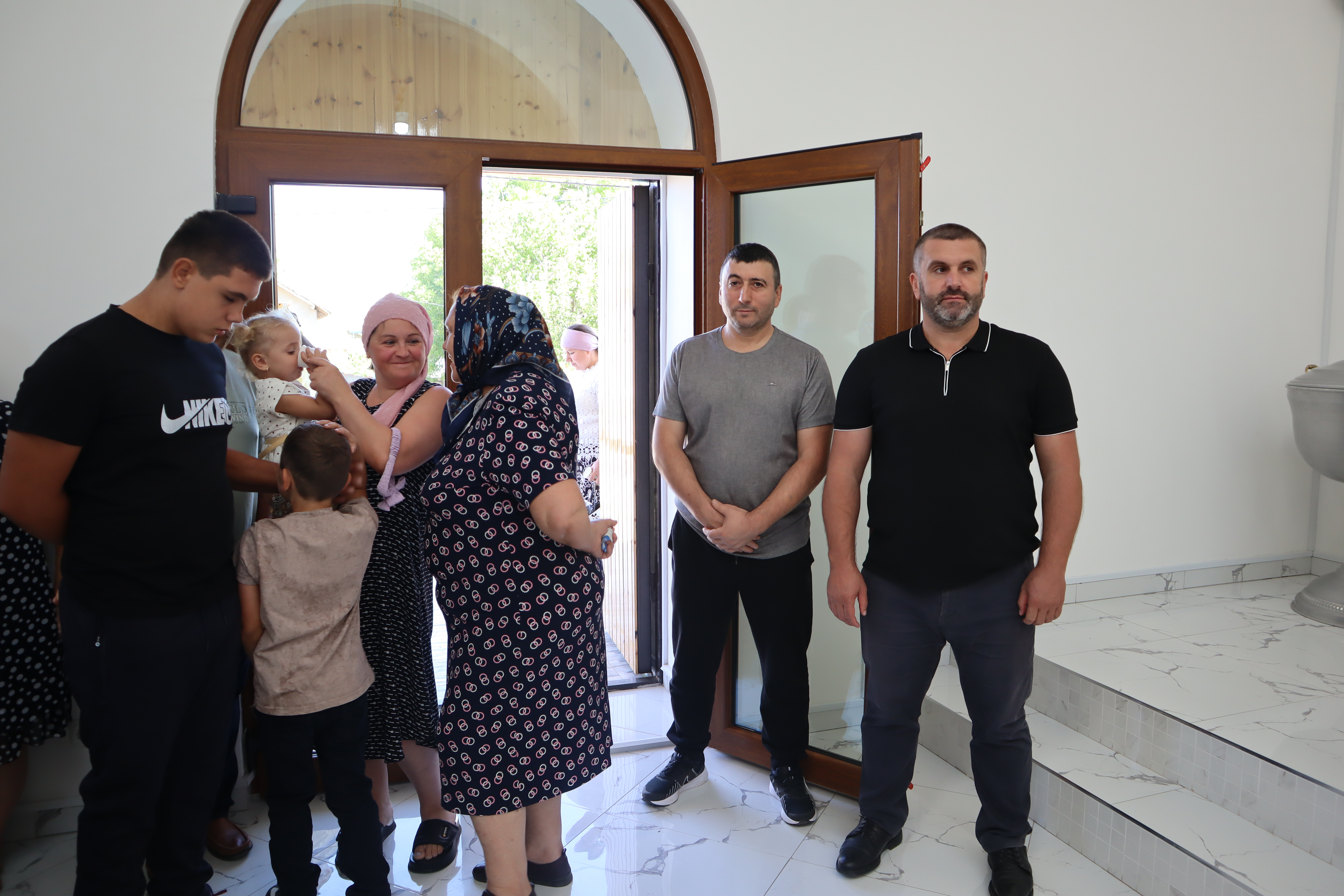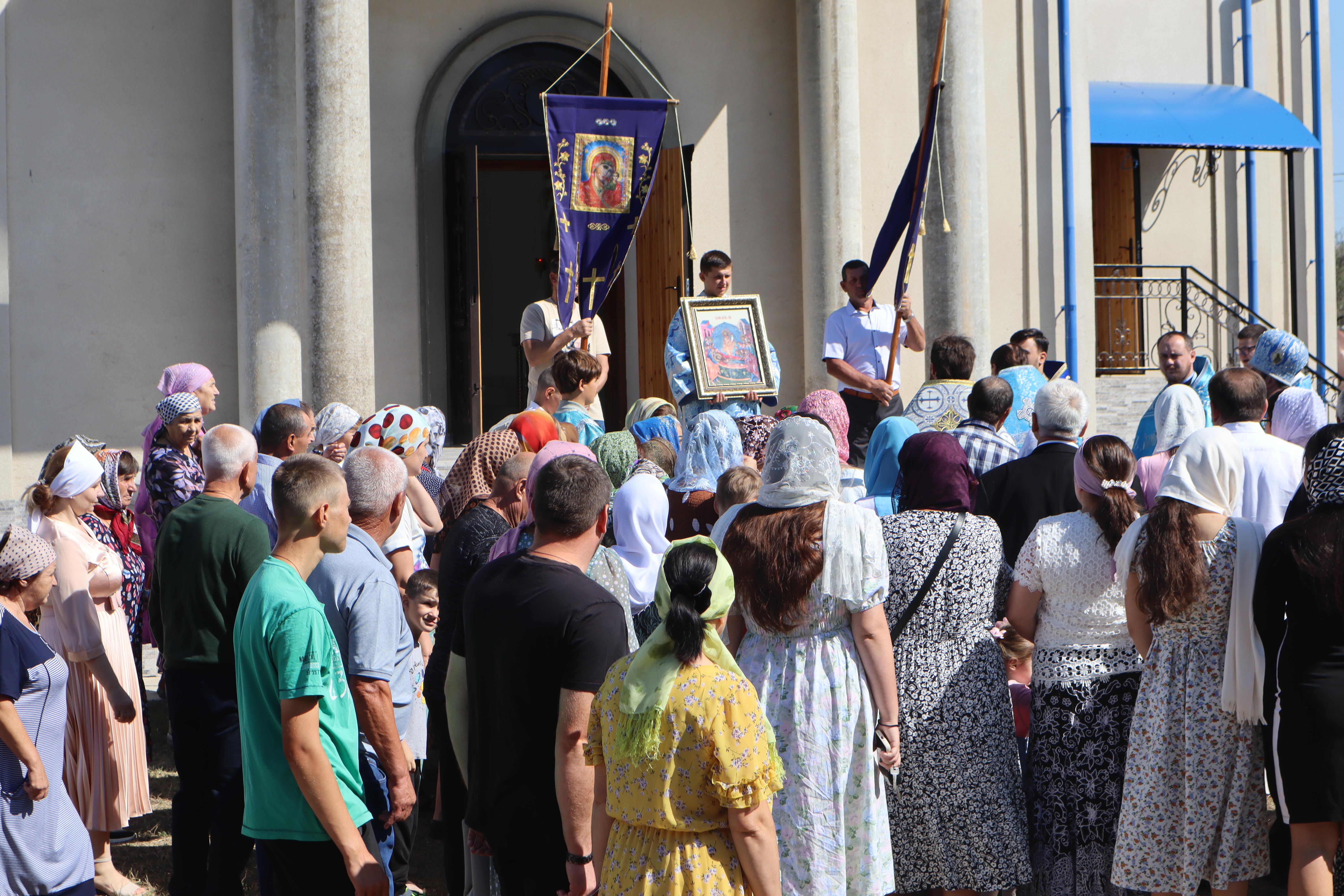 По окончании литургии состоялся традиционный крестный ход вокруг храма, после чего все были приглашены на праздничную трапезу (курбан).