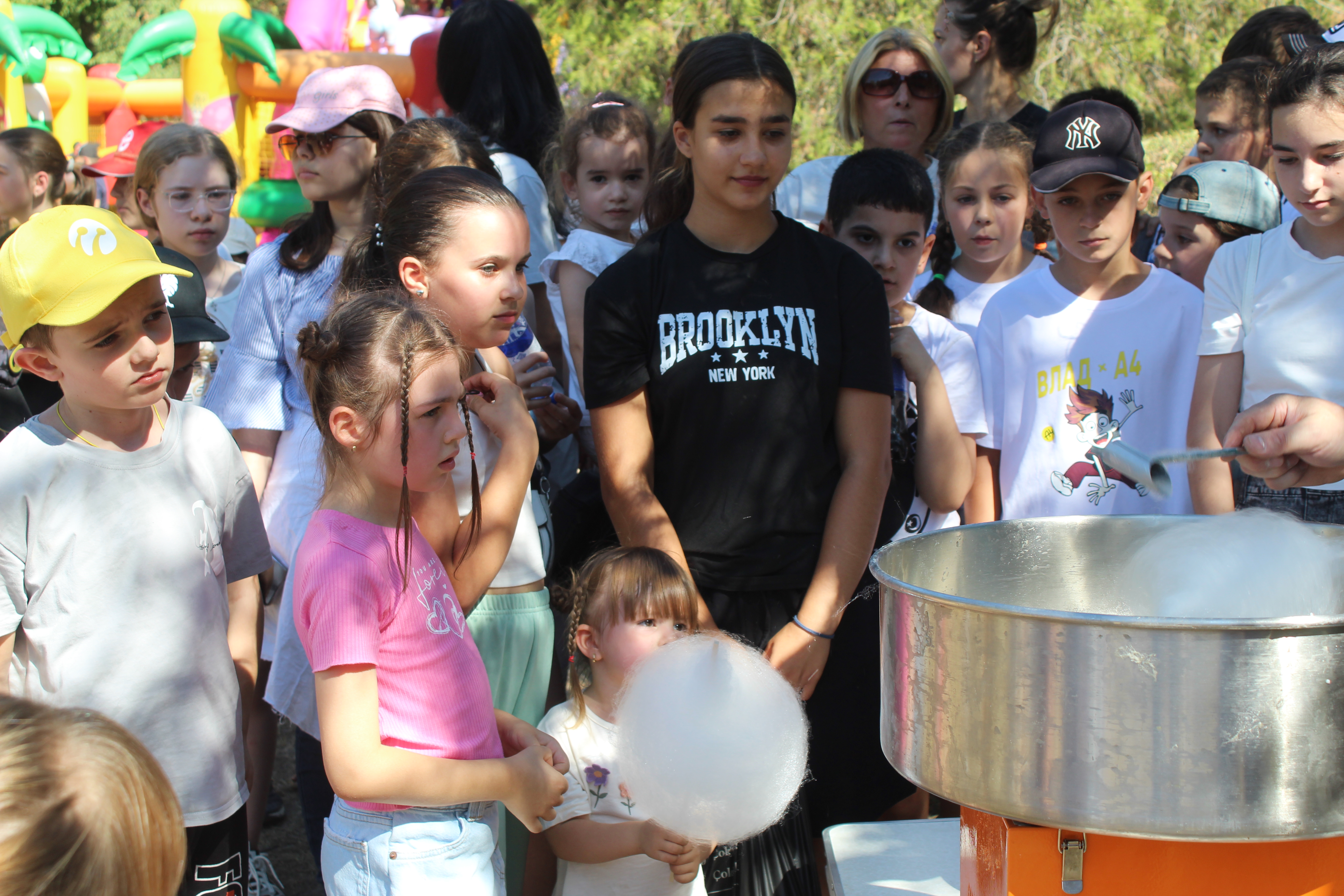 Для юных участников праздника были организованы весёлые развлечения. На территории парка работали батуты, детей развлекали яркие ростовые куклы, создавая атмосферу настоящего веселья и сказки. Особой радостью стала сладкая вата — традиционное угощение, которое дарит вкус детства.