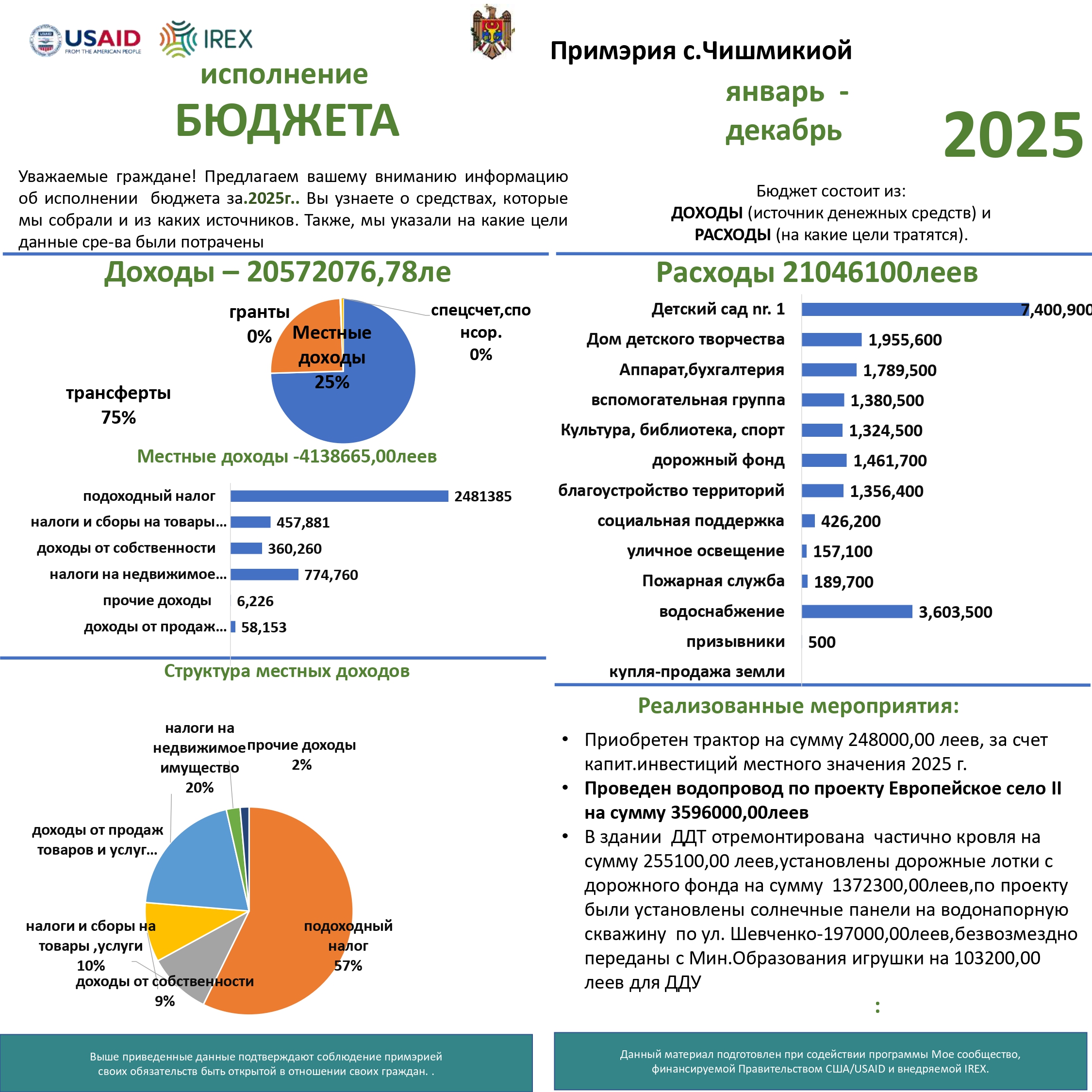 Бюджет по доходам и расходам в селе Чишмикиой на 2021 год составит 10 миллионов 911 тысяч 200 леев.