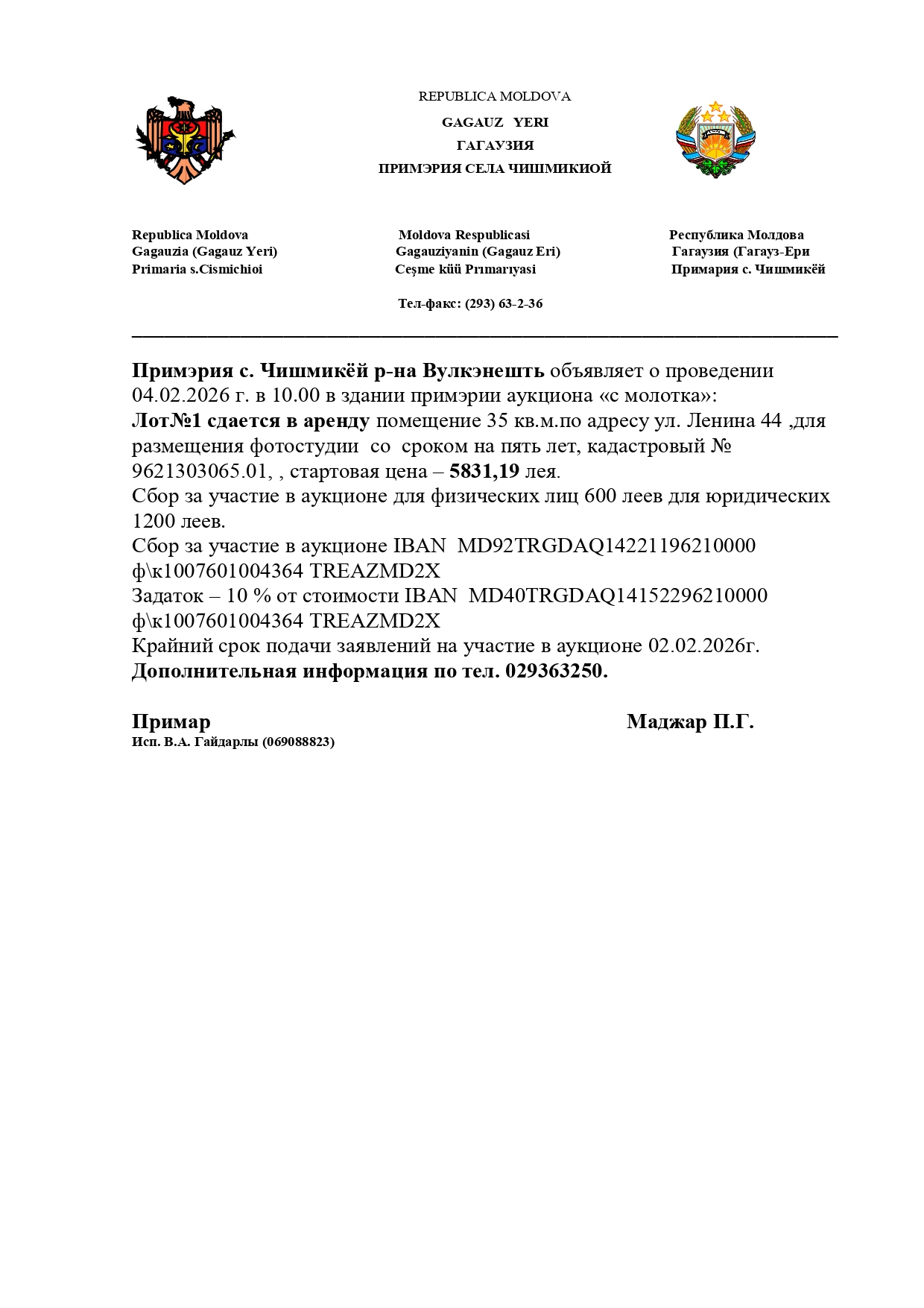 Новости Примэрия с. Чишмикиой объявляет о проведении аукциона 3 месяца назад Продолжить чтение Вперед Чишмикиой получит финансирование на разработку генпланаНазад Следующая запись Еще статьи Новости 22 апреля ожидается отключение электроэнергии 2 дня назад Новости Объявление! 4 дня назад Новости Поздравление примара Маджар Петр Георгиевича с Праздником Светлой Пасхи 2 недели назад